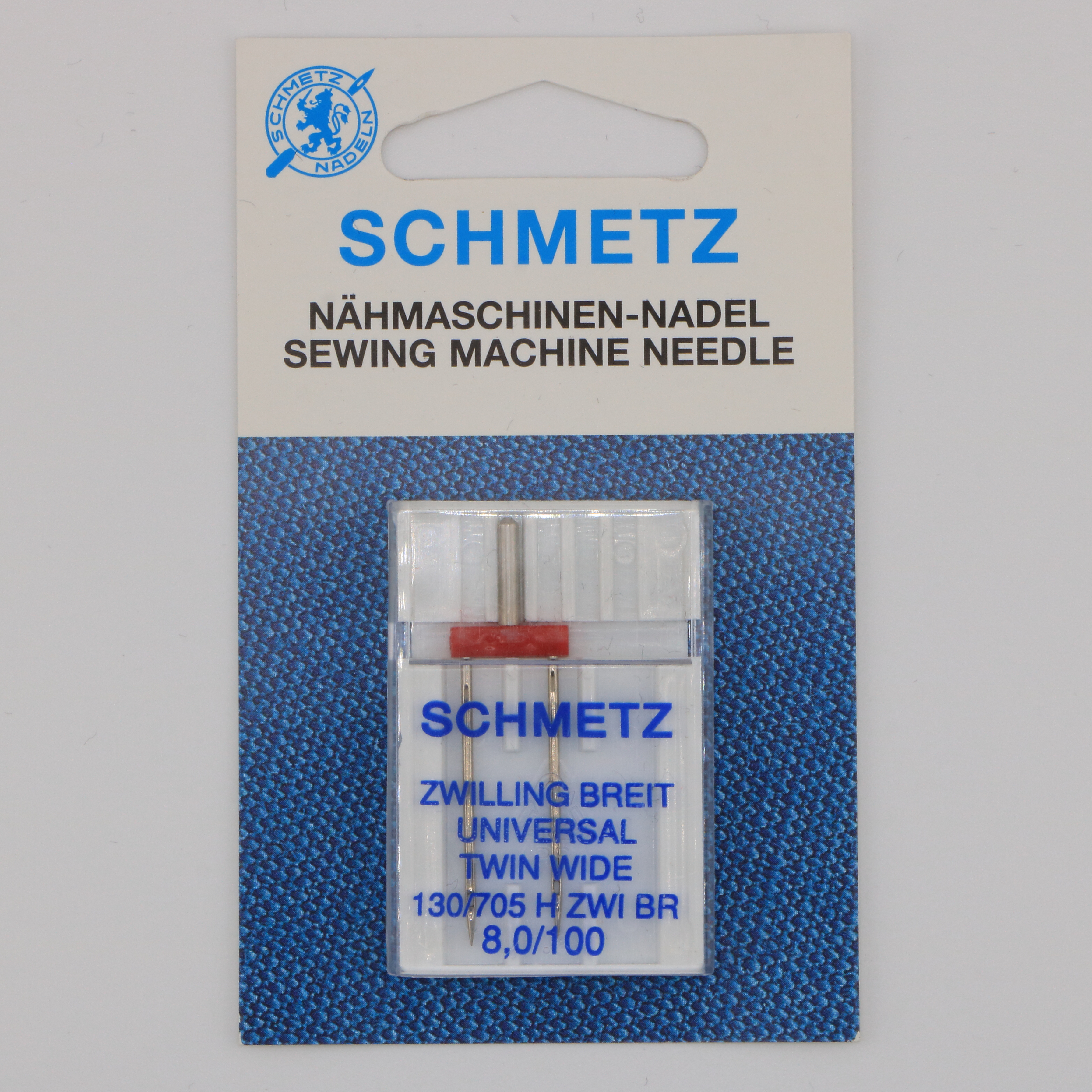 Aiguille double NM 100 avec entraxe de 6 mm pour surpiqûres larges sur toile, coton épais ou lin. Idéale pour les coutures visibles et effets décoratifs sur machine familiale à talon plat. Pointe universelle robuste pour traverser les fibres sans les abîmer.