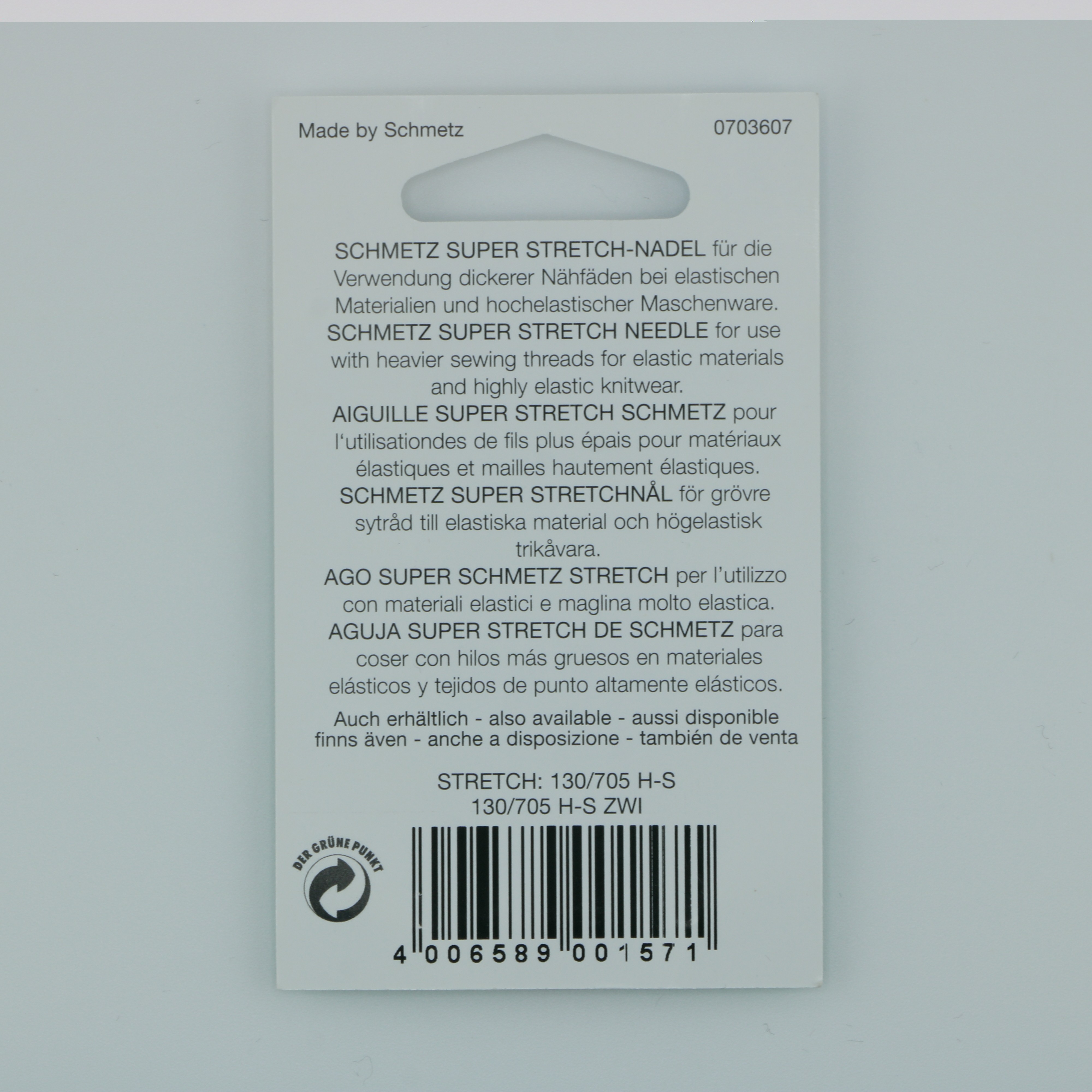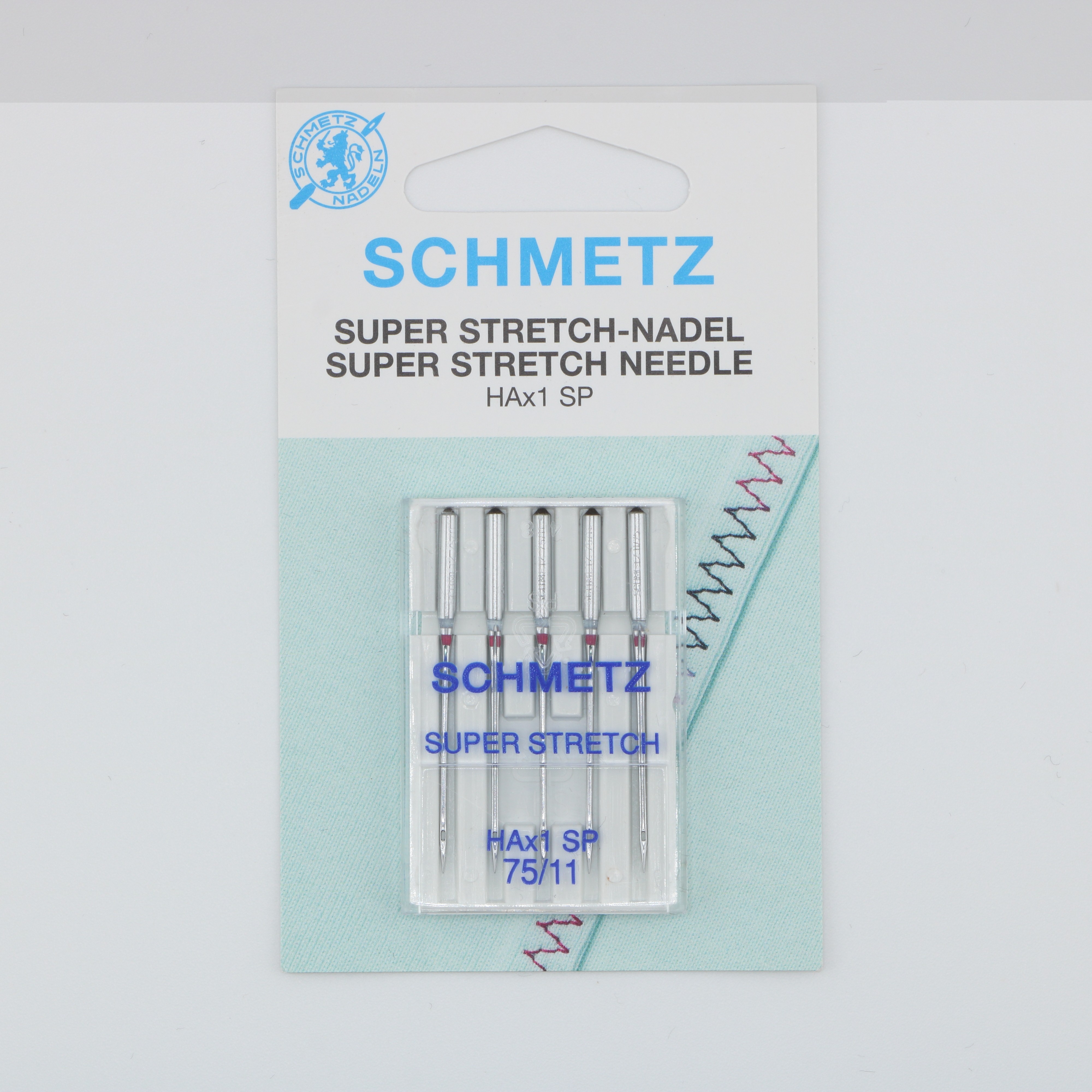 L’aiguille Schmetz Super Stretch NM 75 (130/705 HAx1 SP) a été conçue pour les tissus ultra-extensibles qui posent problème aux aiguilles classiques. Grâce à sa forme spécifique, son chas élargi et sa pointe légèrement boule, elle traverse sans déformer, tout en assurant un point net, même sur les matières les plus nerveuses.