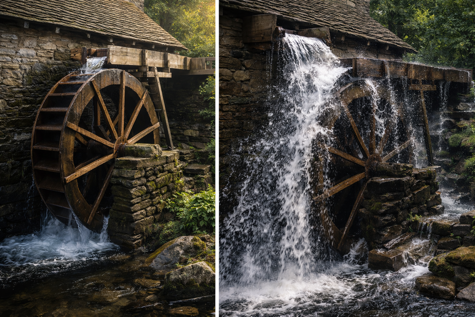 On peut illustrer cela avec une image très parlante : celle du moulin à eau. Imaginez deux moulins. Le premier est parfaitement conçu : l’eau arrive correctement, la roue est bien ajustée, et presque toute l’énergie est utilisée pour faire tourner la meule. Le second est mal conçu : l’eau éclabousse, fuit, et une grande partie de l’énergie est perdue avant même d’être exploitée. Résultat, il faut beaucoup plus d’eau pour obtenir le même travail.