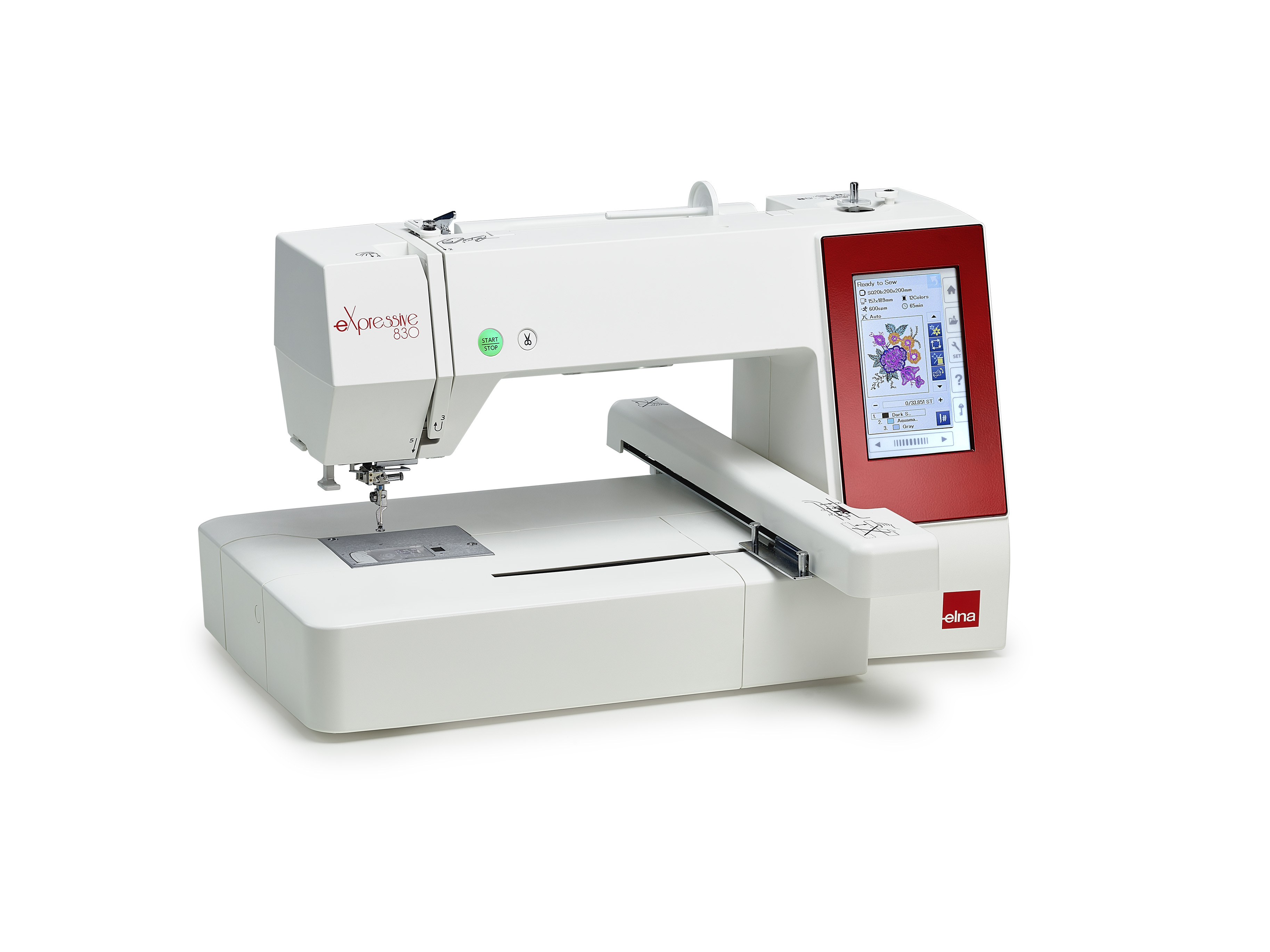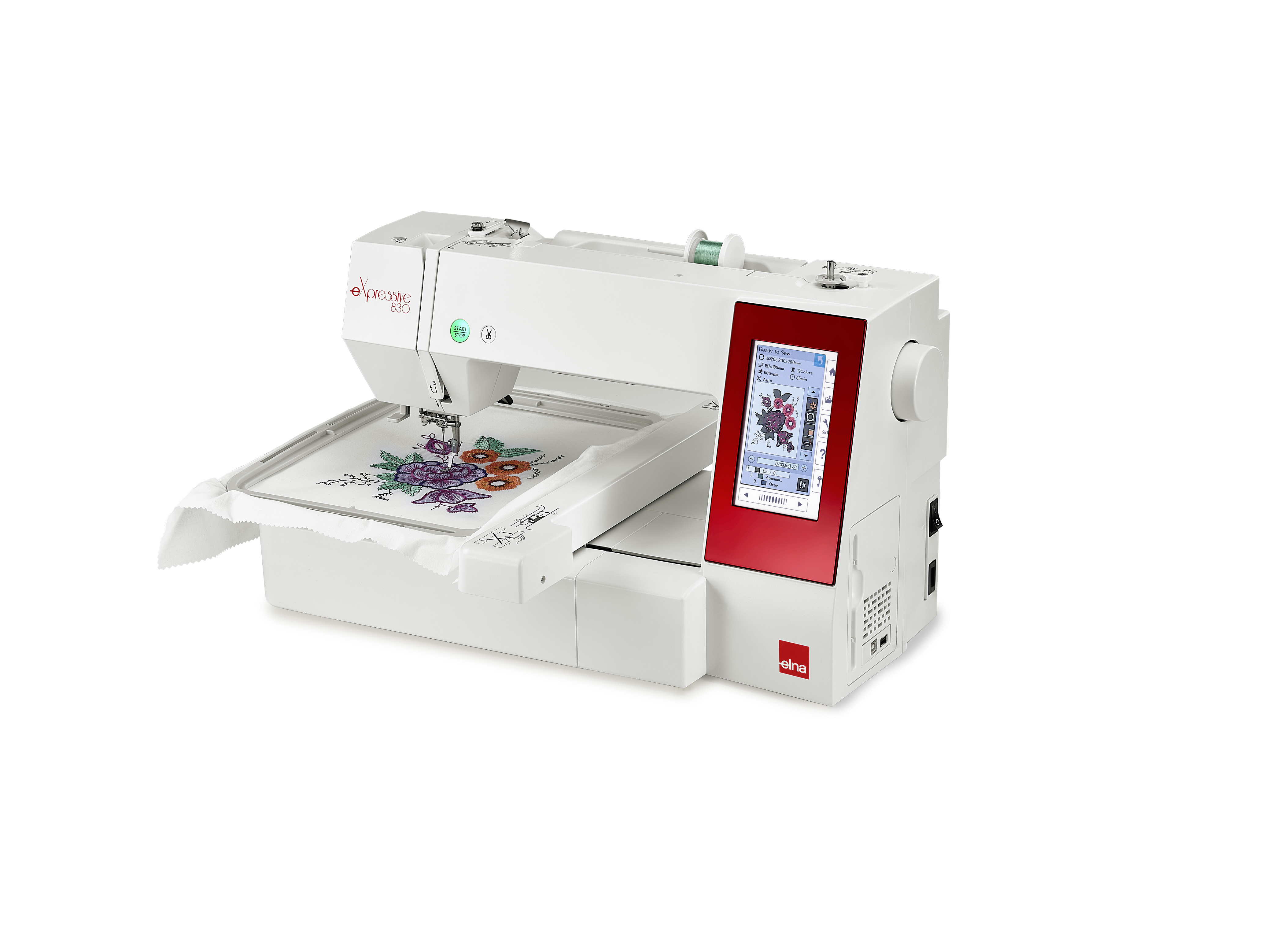 ? Elna eXpressive 830L ?Une brodeuse puissante au grand cadre de 200x360 mm.Facile à prendre en main, parfaite pour créer sans limites !