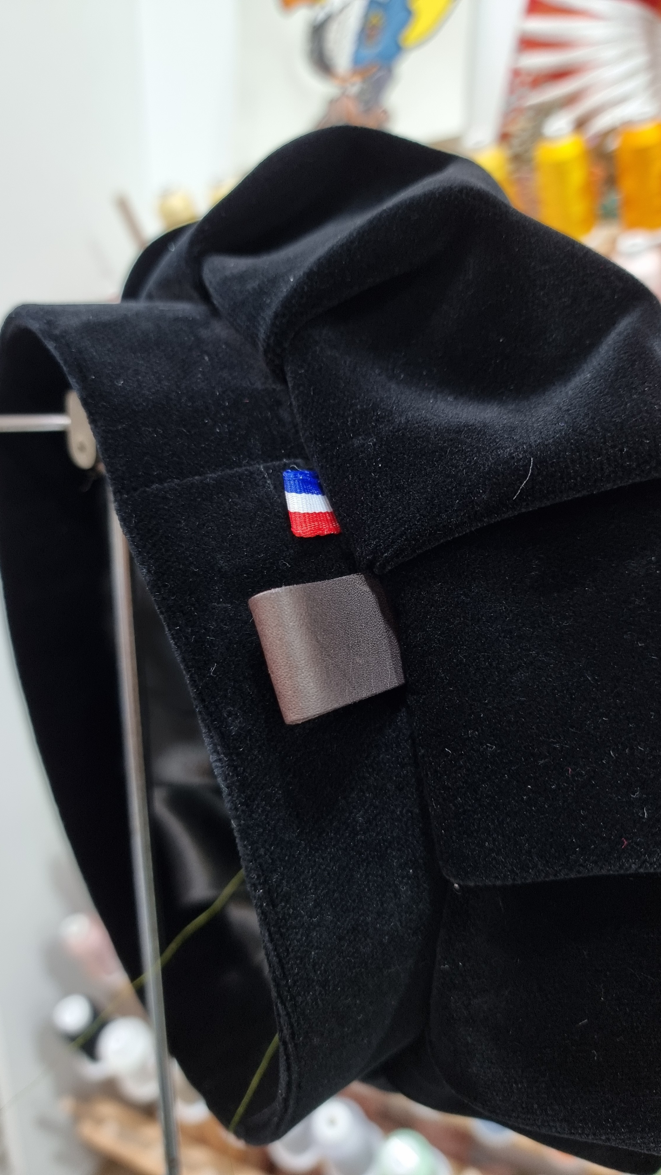 Veuillez décrire l’agencement souhaité des couleurs telles qu’elles seront disposées dans la faluche. - Par exemple, pour une faluche blanche et rouge, précisez si vous souhaitez le rouge à droite et le blanc à gauche ; - Pour une faluche à 4 couleurs bleu blanc rouge noir, spécifiez si vous désirez le bleu et le rouge à droite, le blanc en bas, le bleu et le noir à gauche, avec le noir en bas). Notez que l’agencement est toujours décrit depuis l’arrière du chapeau, face à soi.