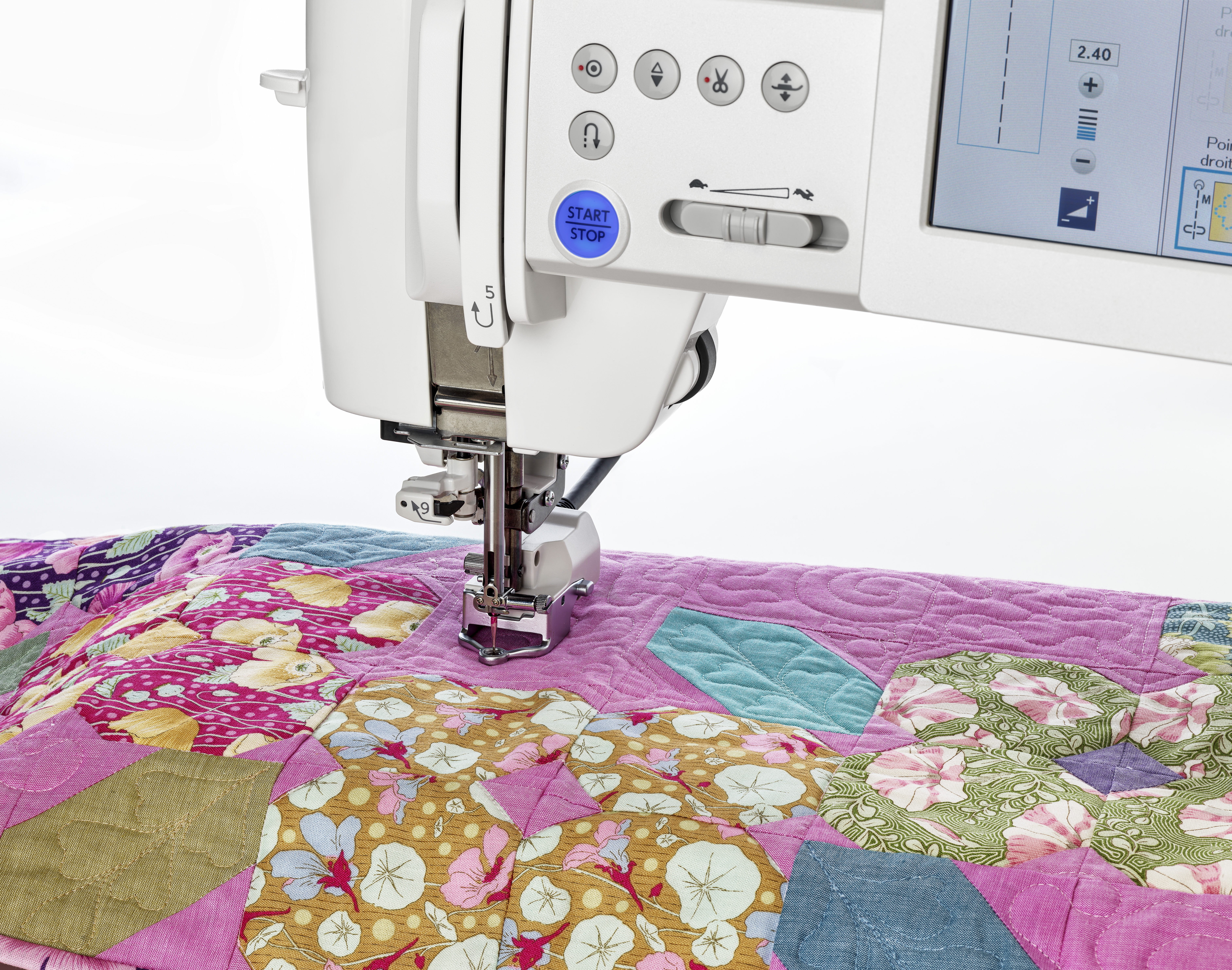 Vous obtiendrez une longueur de point régulière et des résultats d'une précision absolue pour le quilting en piqué libre comme avec règles.