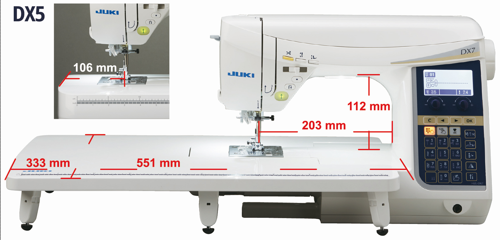 Que dire des Juki DX5 et Juki DX7 sinon qu'elles sont des machines d'excellence, sans compromis ! Avec ces modèles, on entre véritablement dans un autre univers de la couture.