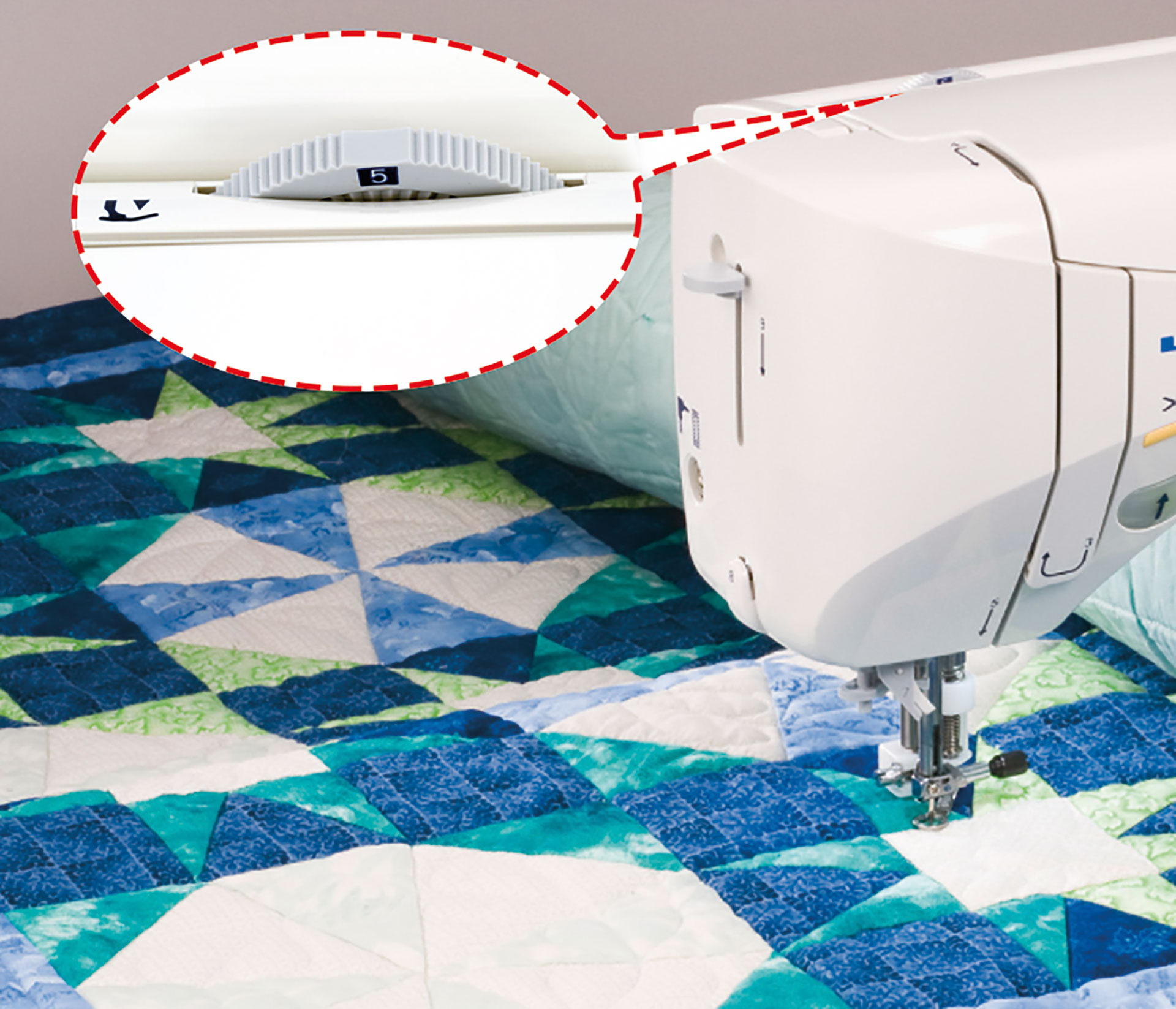 Les passionnés de quilting profiteront également du pied flottant, qui réduit la pression du pied presseur pour faciliter le piqué libre et garantir un mouvement fluide du tissu tout en évitant l’écrasement de la matière.