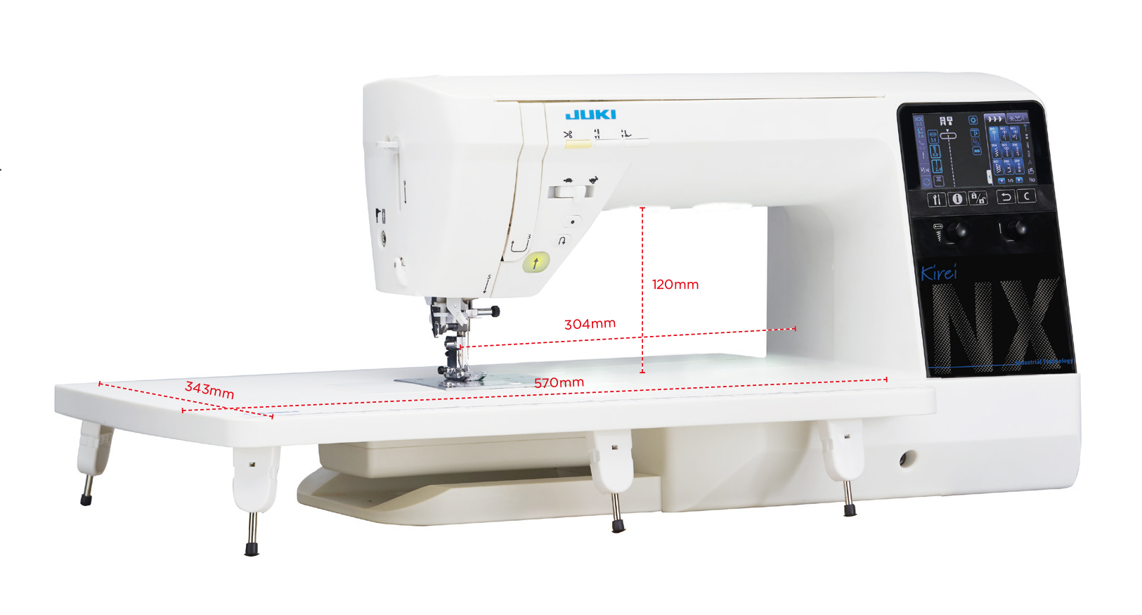 Les patcheuses et quilteuses apprécieront particulièrement cet espace généreux ainsi que la table d’extension fournie.