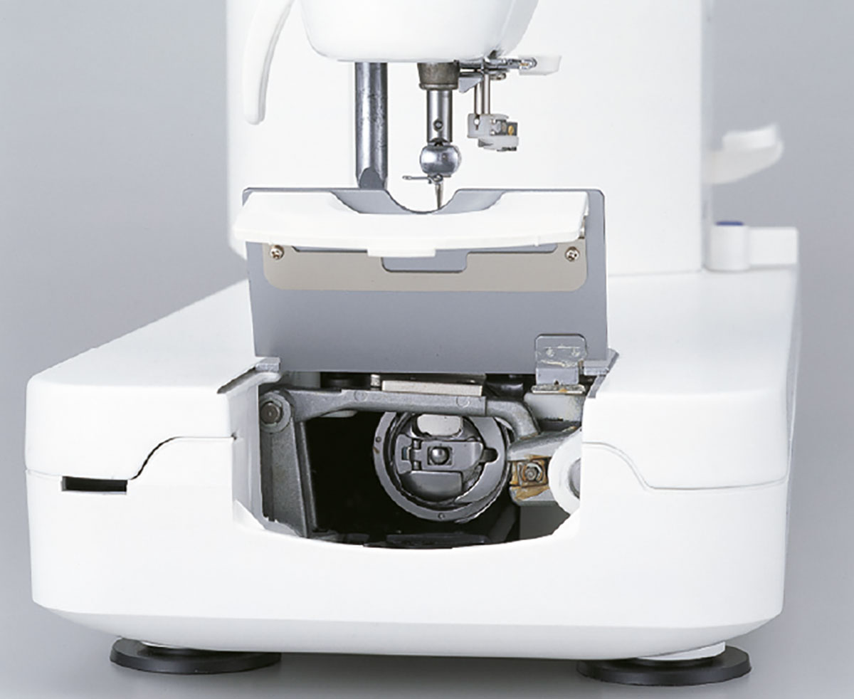 Elle est équipée d'une genouillère permettant de soulever le pied-de-biche jusqu'à 12 mm et intègre des technologies industrielles, comme un coupe-fil surpuissant capable de couper des fils nm30 avec facilité, tout en restant parfaitement transportable et se range facilement.