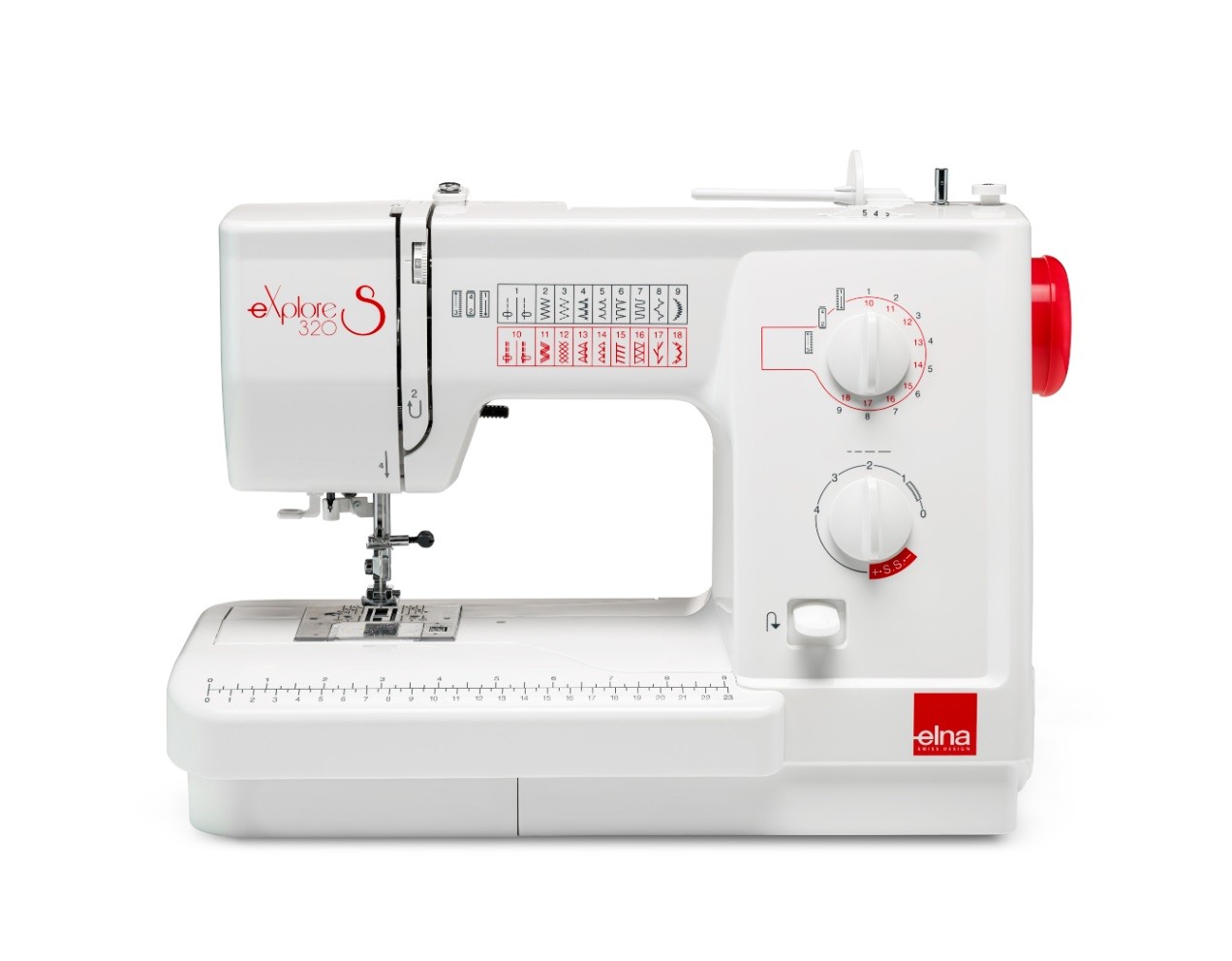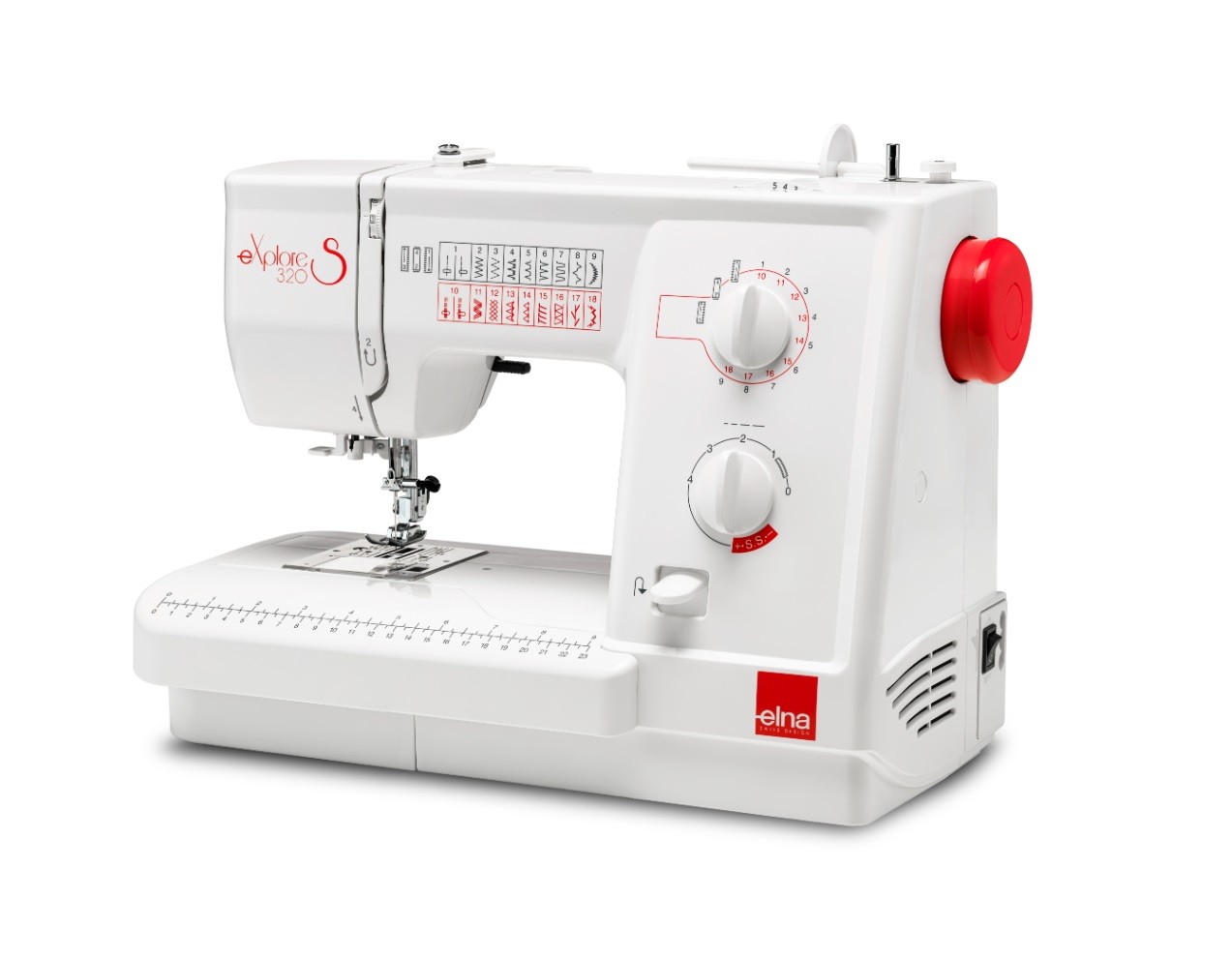 Comme la plupart des machines modernes, la Elna eXplore 320S est équipée d'une aide à l'enfilage de l'aiguille, de griffes escamotables, d'un réglage de la pression du pied, ainsi que d'un éclairage par lampe LED, facilitant ainsi vos projets de couture.