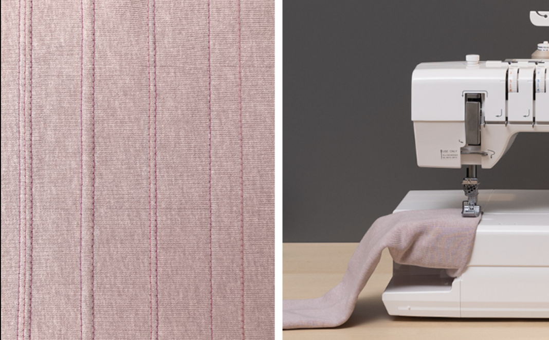 Elle permet de réaliser des ourlets plats et des finitions propres sur des matières comme le jersey ou le lycra, sans risque de déformation ni de couture qui craque à l’étirement.