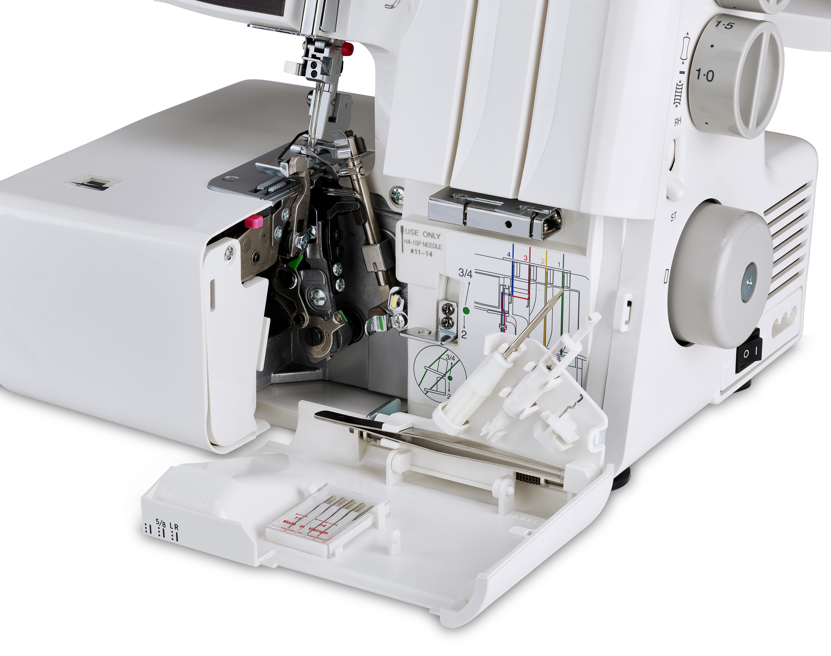 Aiguille NM 80 de type ELx705 CF, conçue pour la majorité des surjeteuses et recouvreuses familiales. Spécialement adaptée aux tissus tissés comme le coton. Sa fente de renfort et sa double rainure assurent un point net et régulier, même à grande vitesse.